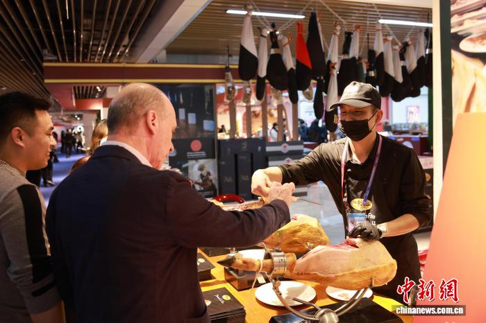 11月14日,外洋推销商品味西班牙水腿。中新社记者 傅飞腾 摄